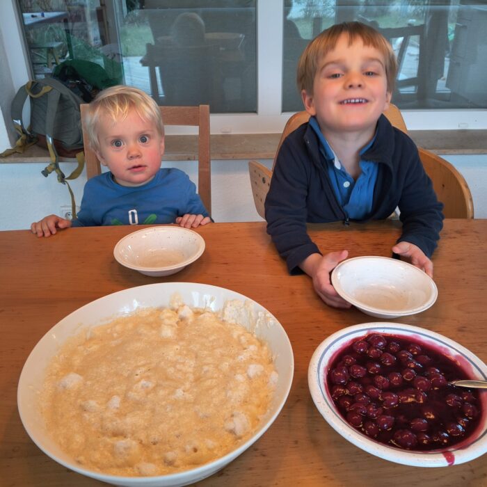 Andris prepared buberts together with his four-year-old son Māris, using a recipe from his grandmother’s wartime-refugee cookbook, so there would be something tasty ready when little brother Lauris woke...