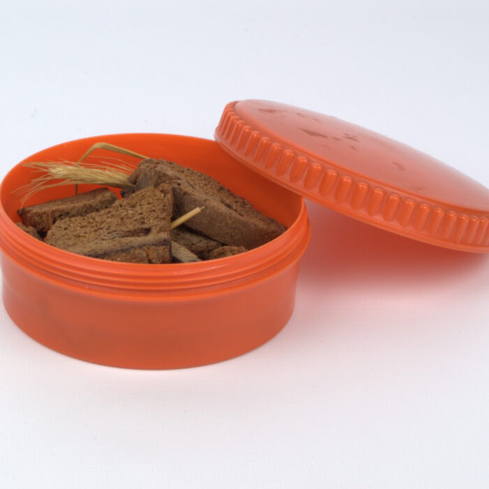 Vilhelms Griķis’ butter container, in which he kept symbols of home, taken from Latvia during the refugee journeys of the Second World War: rye bread, ears of grain, and...